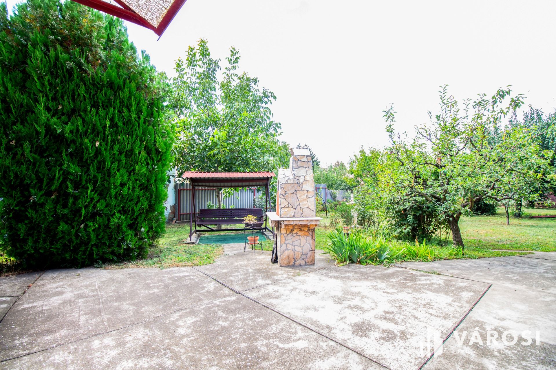 Az udvaron lehetőség van tágas terasz kialakítására, melynek helyét az épület L alakja remekül "adja". Kerti grill, kemence és sütőhely is azonnal az új tulajdonos szabadidejének kellemes eltöltésére ad lehetőséget.