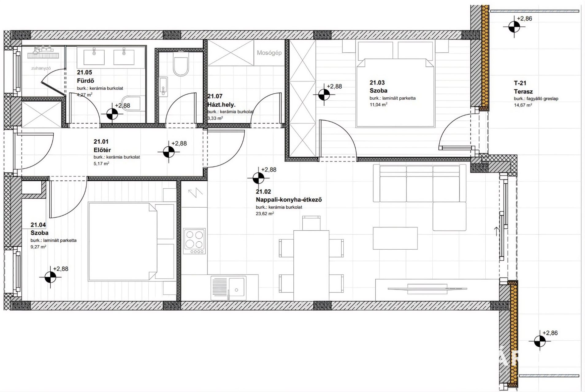 • Terület: 61 m² lakótér + 15 m² panorámás terasz!