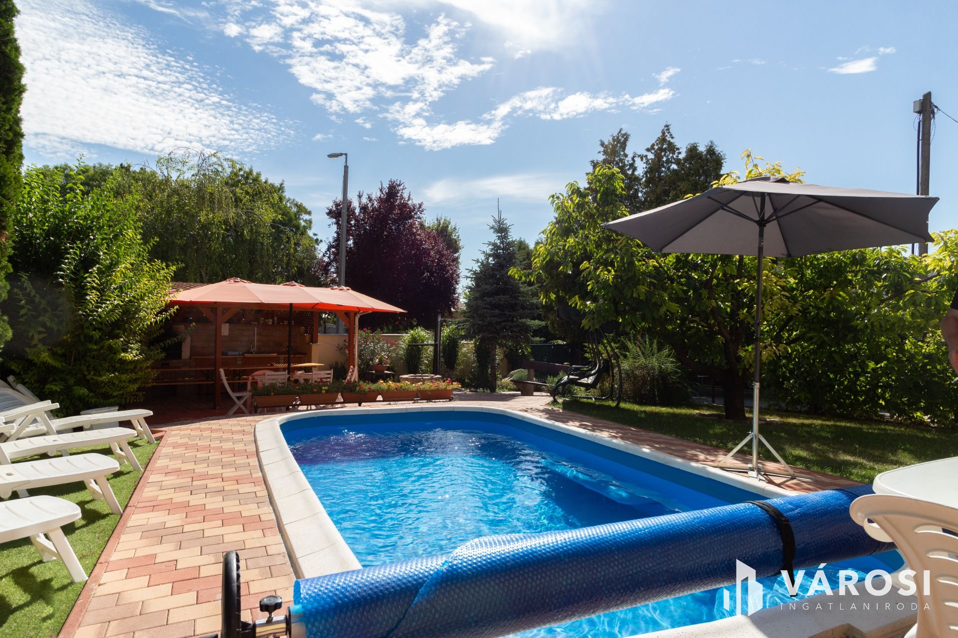 A telek mérete 911 m2 amin ezen felül található fűthető kerti medence, kerti konyha, kemence és bográcsozó, fúrt kút, tároló és akár 5-6 személygépjárműnek parkolási lehetőség.