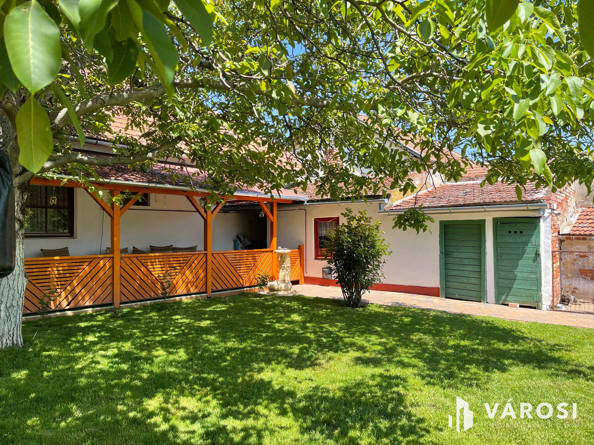 Az udvar igazi hangulatát tágas fedett terasza és az udvar ékessége, egy nagy diófa adja.