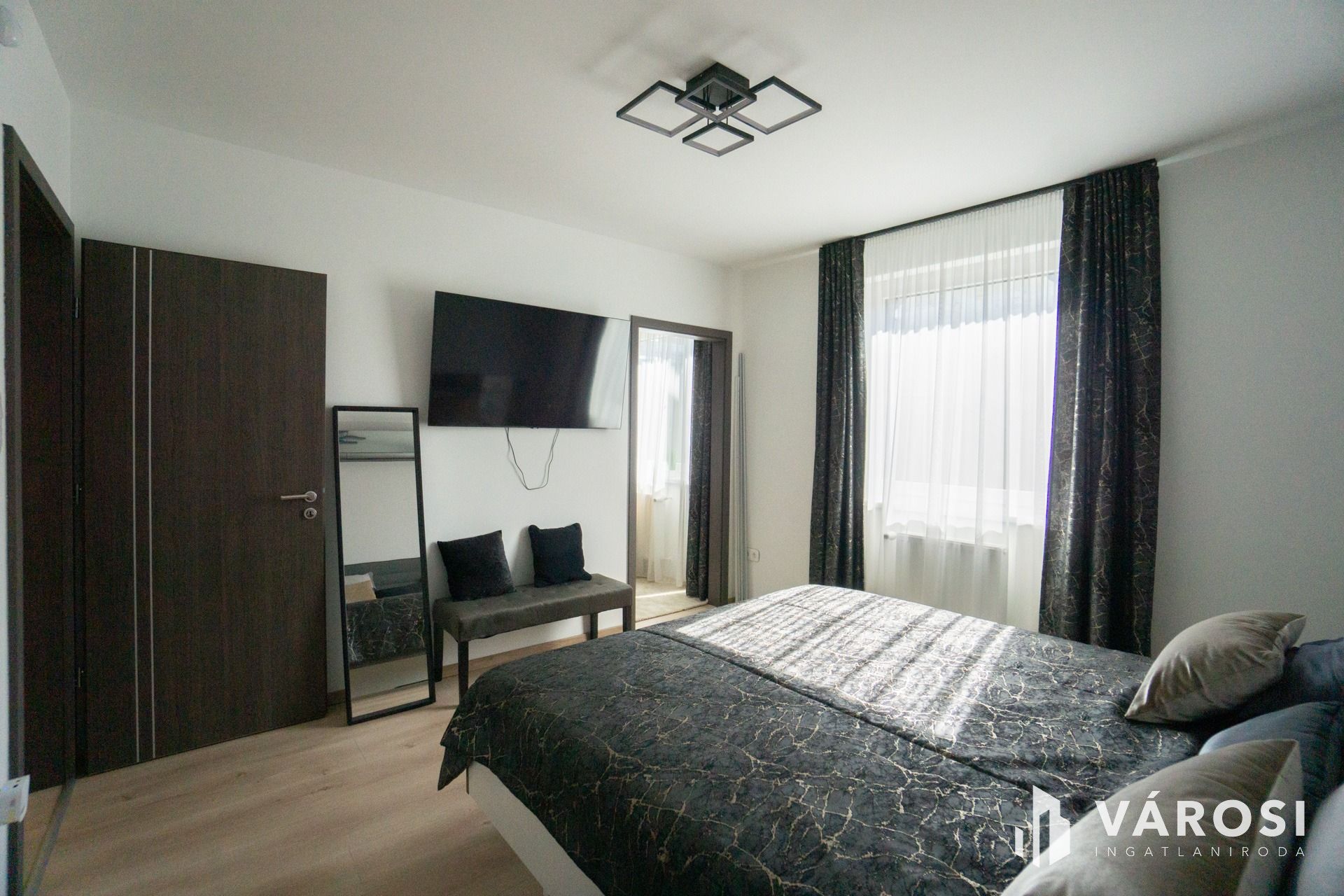 Győr Belvárosában kiadó egy 2020-ban épült hatszintes, liftes társasház, egyik negyedik emeleti, nappali+2 hálószoba+ gardrób szobás lakása.