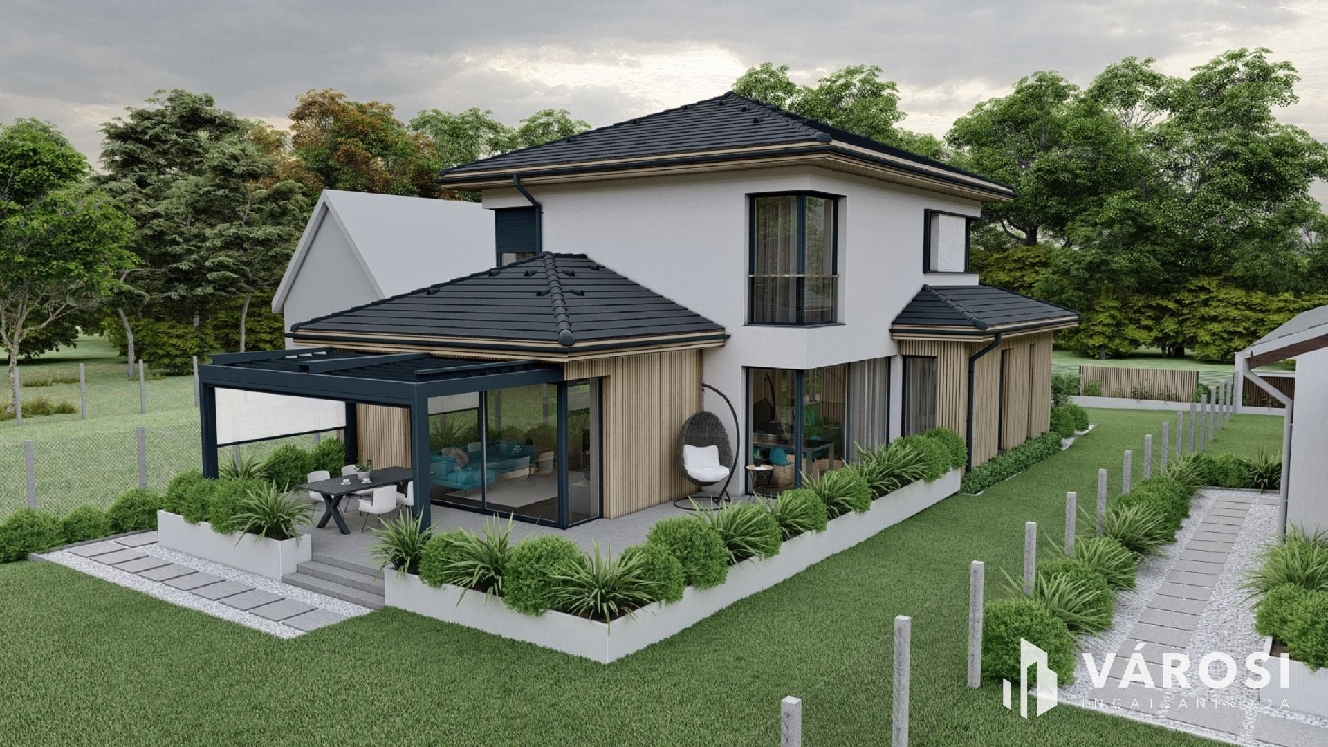 - 746 m2-es önálló telken épülő, szabadon álló belső szintes családi ház