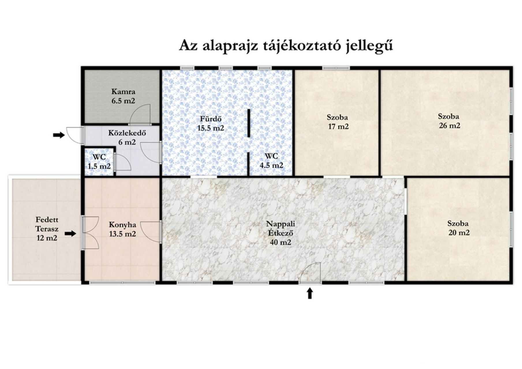 A belső terek kialakítása már egy modern, mai igényeknek megfelelő otthon irányába indult el, amely során a helyiségeket részben egybenyitották, így tágas, jól élhető életterek jöttek létre. A lakás központi része egy közel 40 négyzetméteres nappali-étkező, amelyhez három hálószoba, külön fürdőszoba és WC, valamint konyha és kamra kapcsolódik. Fontos kiemelni, hogy a konyha rész jelenleg egy önállóan működő üzletként funkcionál, amely további lehetőségeket rejt magában.