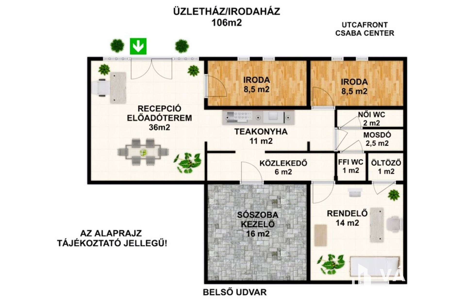 Békéscsaba központjában, a Csaba Center közelében eladó a 106m2 alapterületű ingatlan, amely alkalmas irodaház, üzletház, orvosi rendelő, bemutatóterem és egyéb szolgáltatások kialakítására.