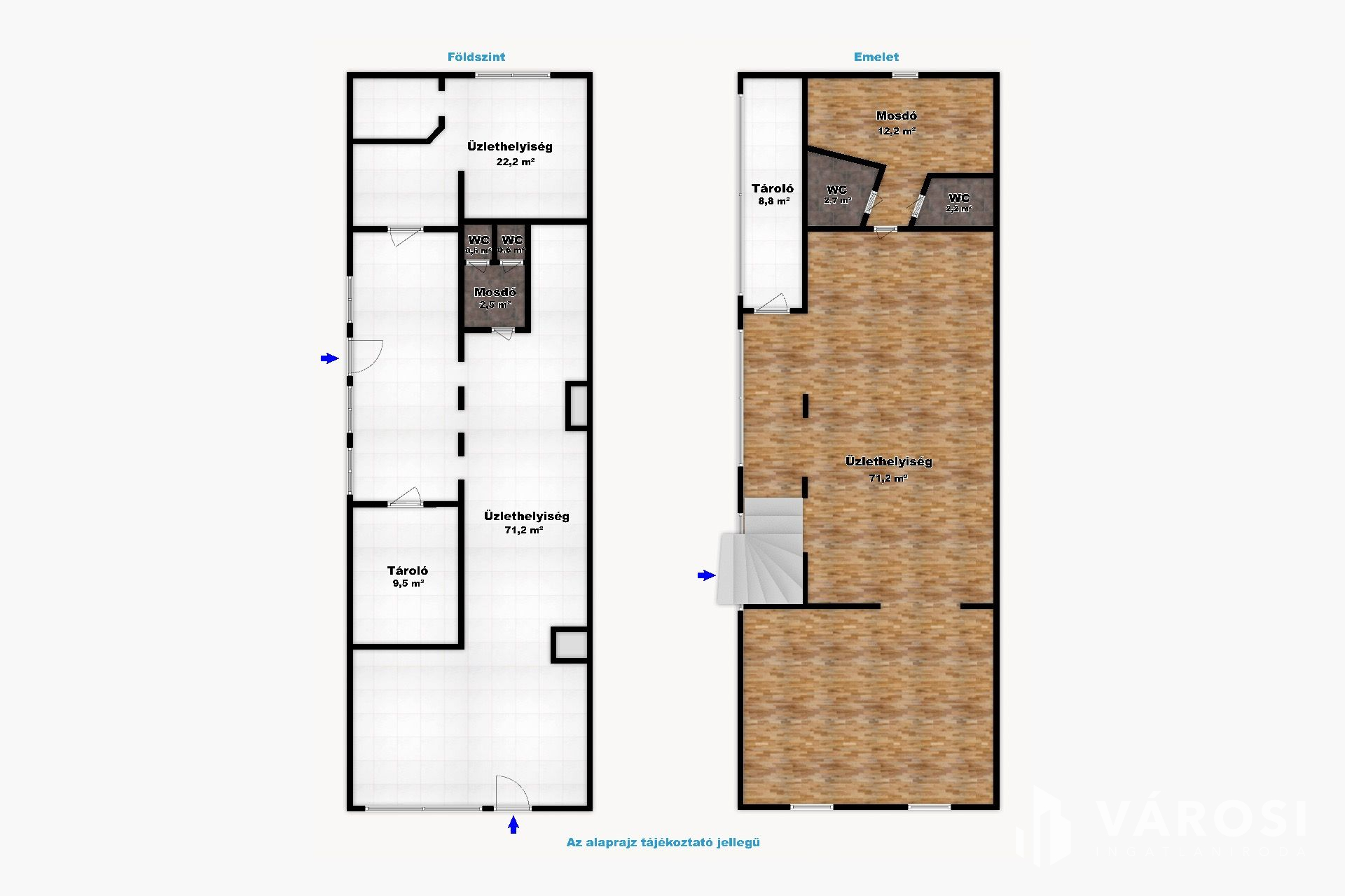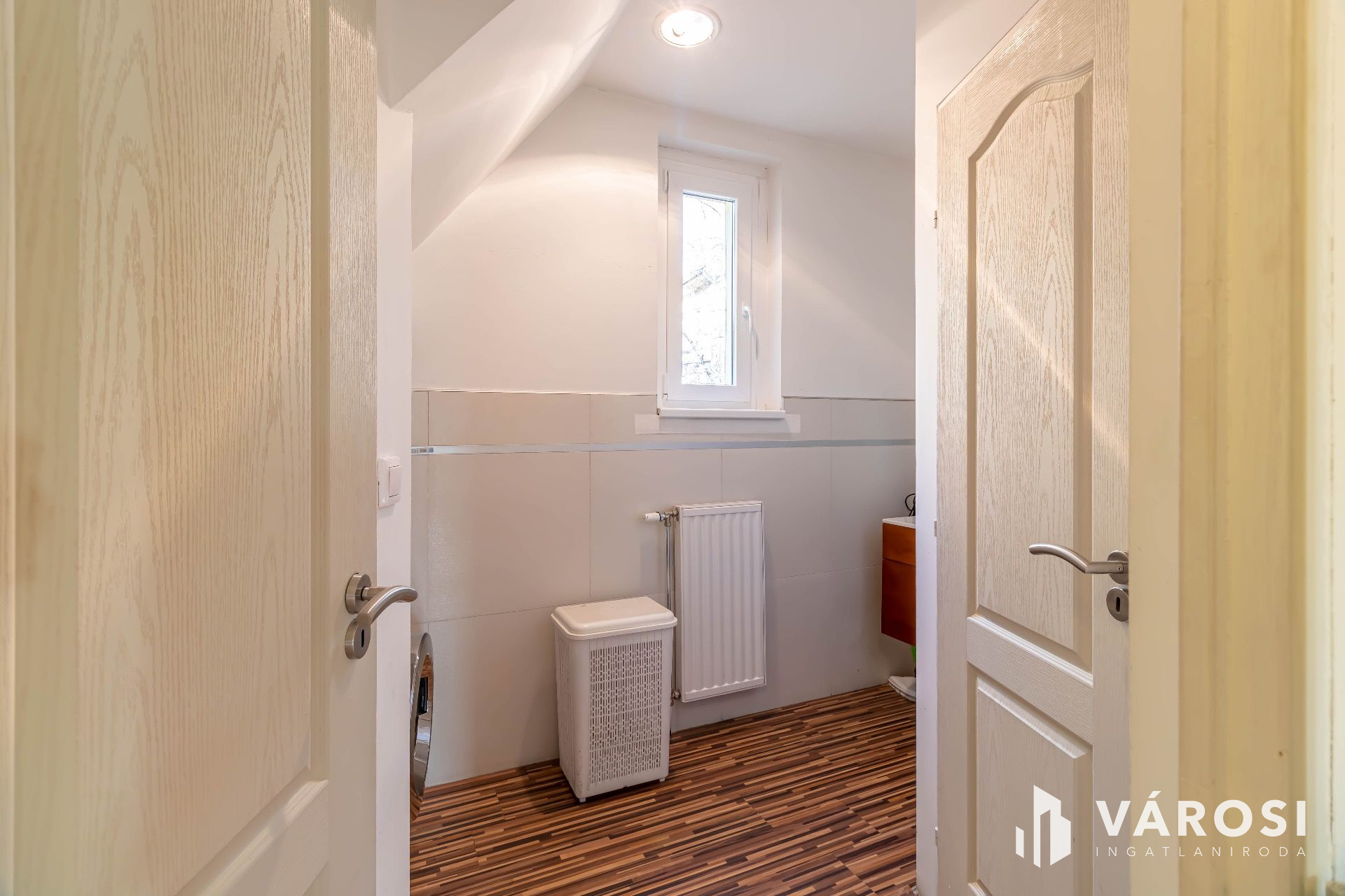 - a földszint 106,6 m², járólappal burkolt, az emelet 97,1 m² és laminált padlóval burkolt,