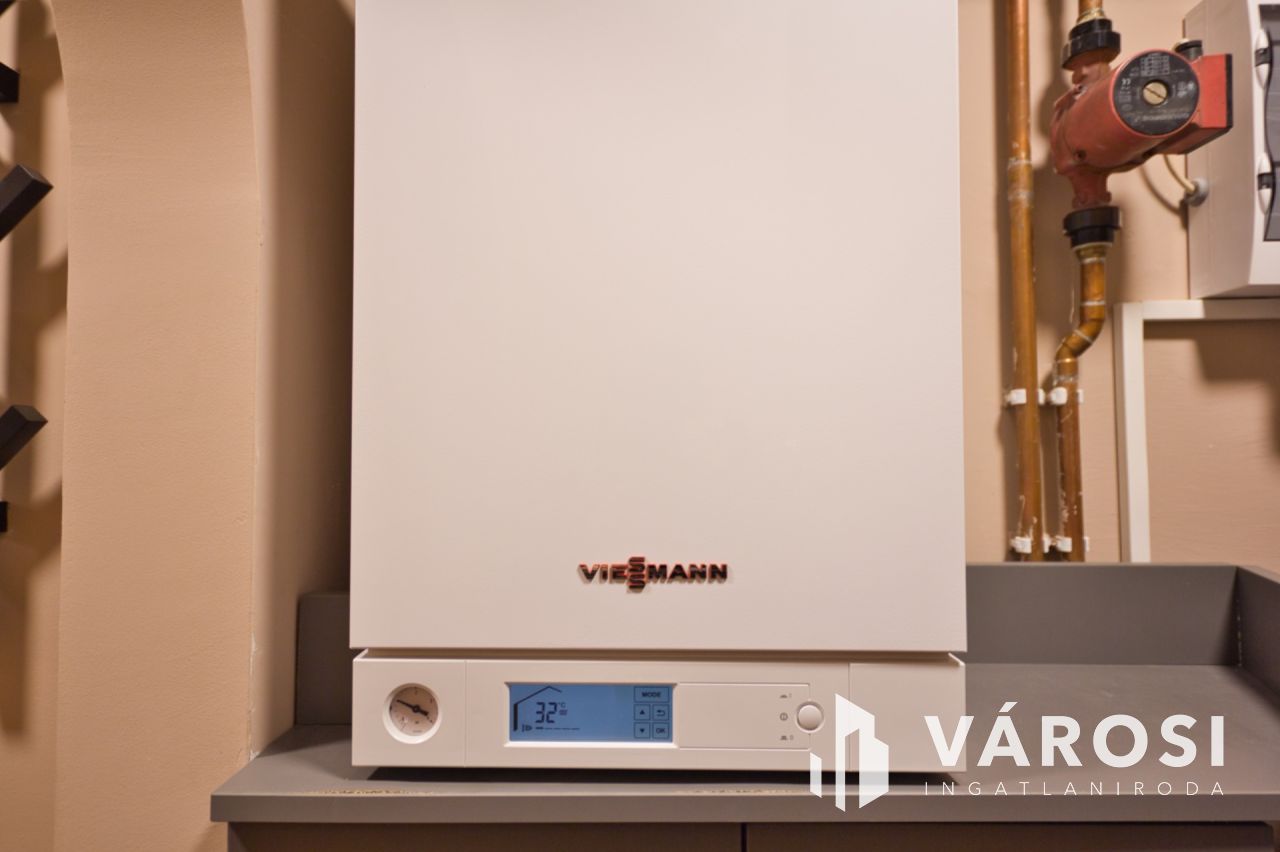 A házban gázfűtés + padlófűtés található, így télen is kellemes meleg otthon fogadja, míg a forró nyári napokon a hűvös levegőről klíma gondoskodik. A vastag, téglafalazatnak köszönhetően egyébként nyáron is kellemes a belső hőérzet.