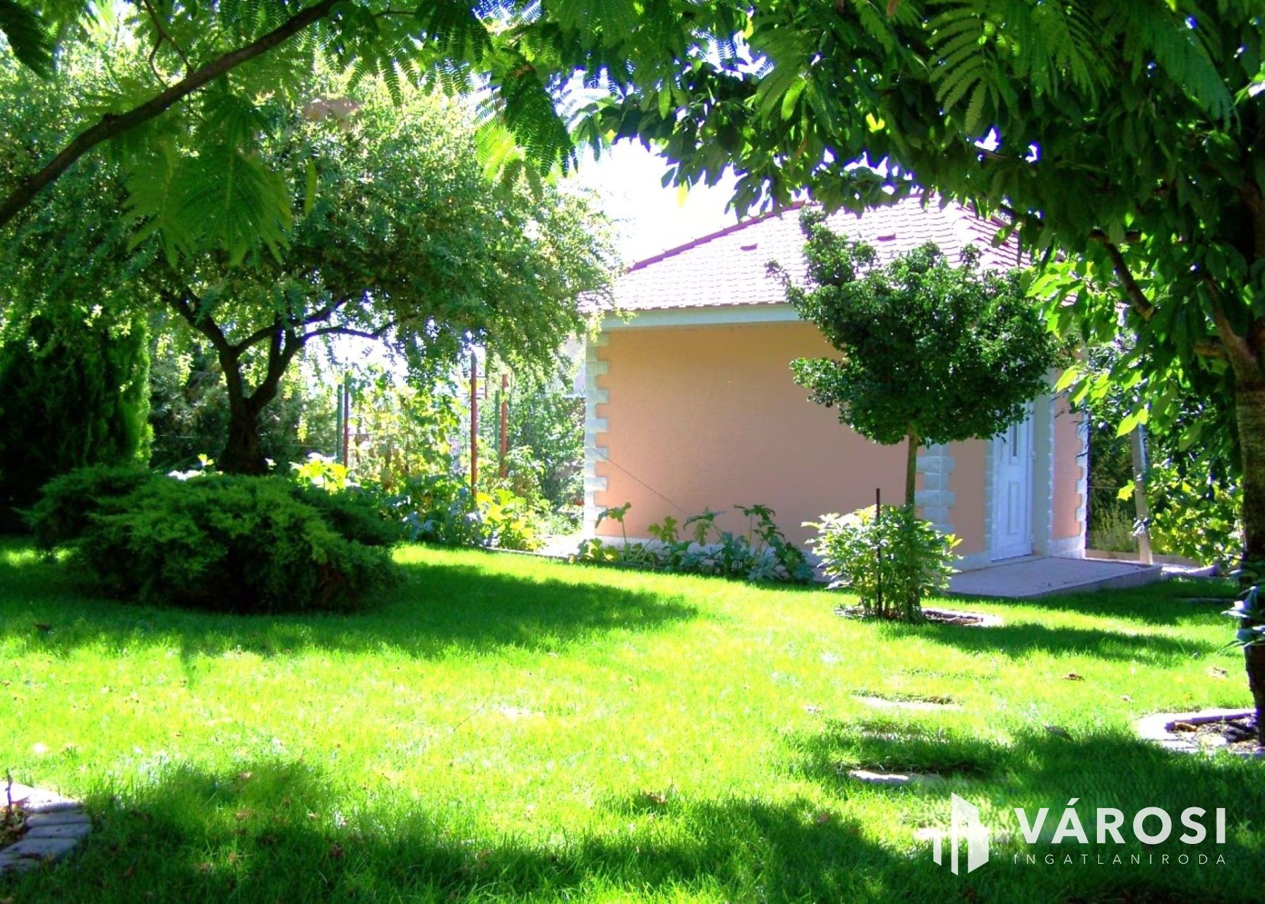 A gondosan kialakított kert intim, park jellegű életteret kínál: