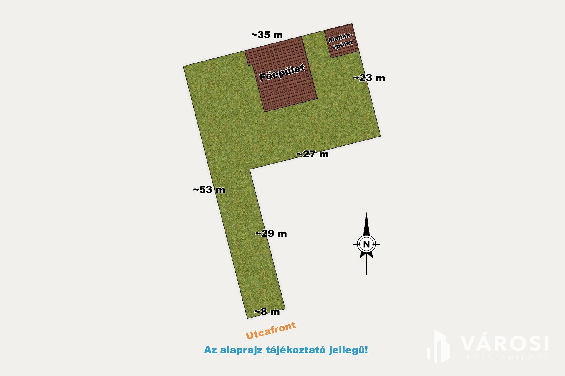 Az épületek egy nyeles telken helyezkednek el, amelyeknek az elhelyezkedése az alaprajzon látható!