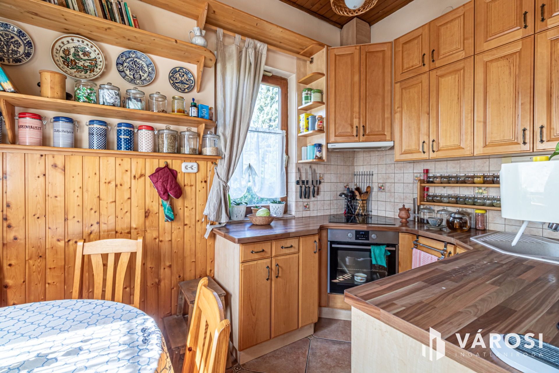 Új, fa nyílászárók és a zöld övezet garantálják a ház csendes, nyugodt atmoszféráját.