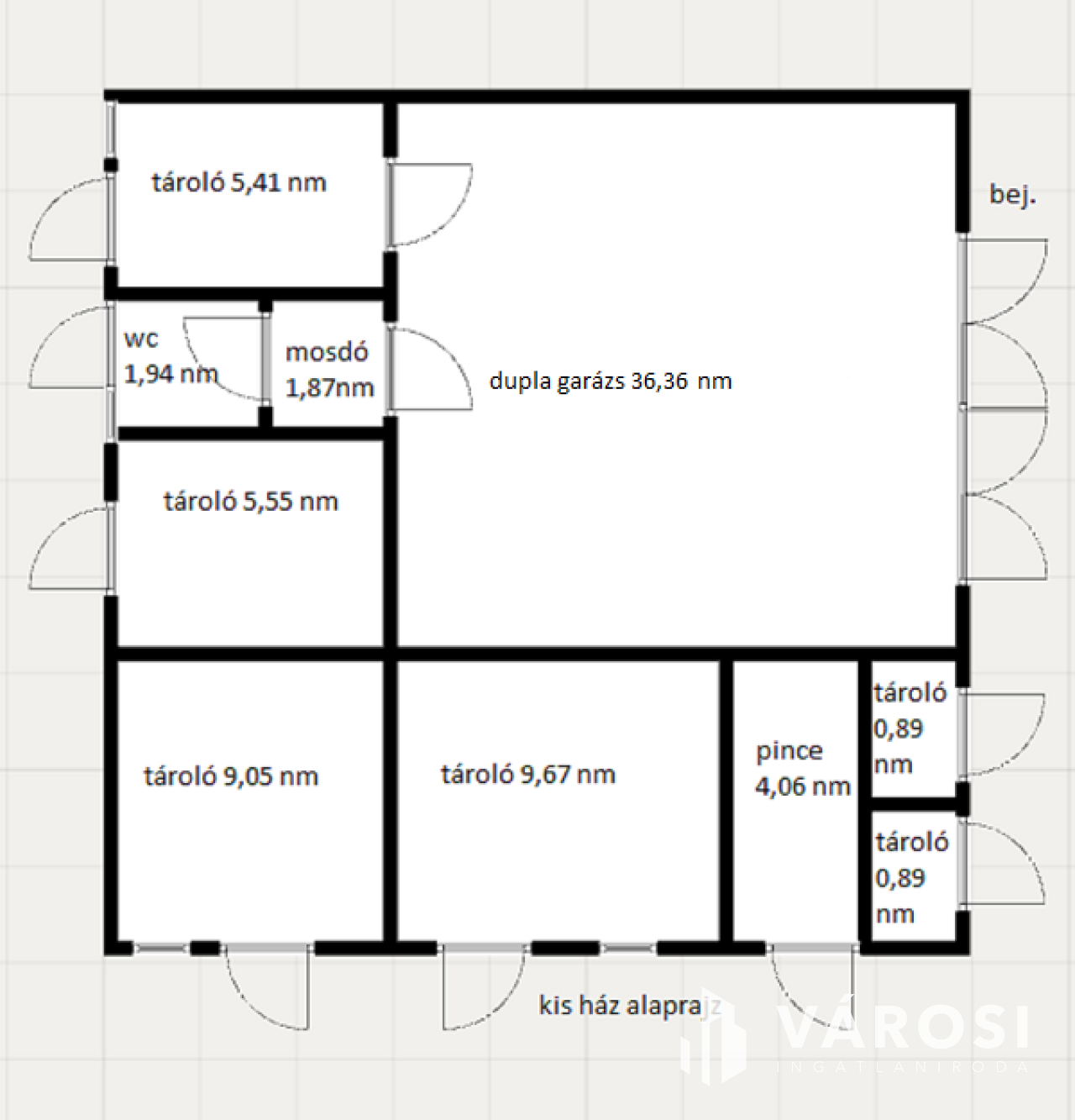 Jelenleg található benne: 1 dupla garázs, wc, mosdó, pince és 6 darab tároló helység.